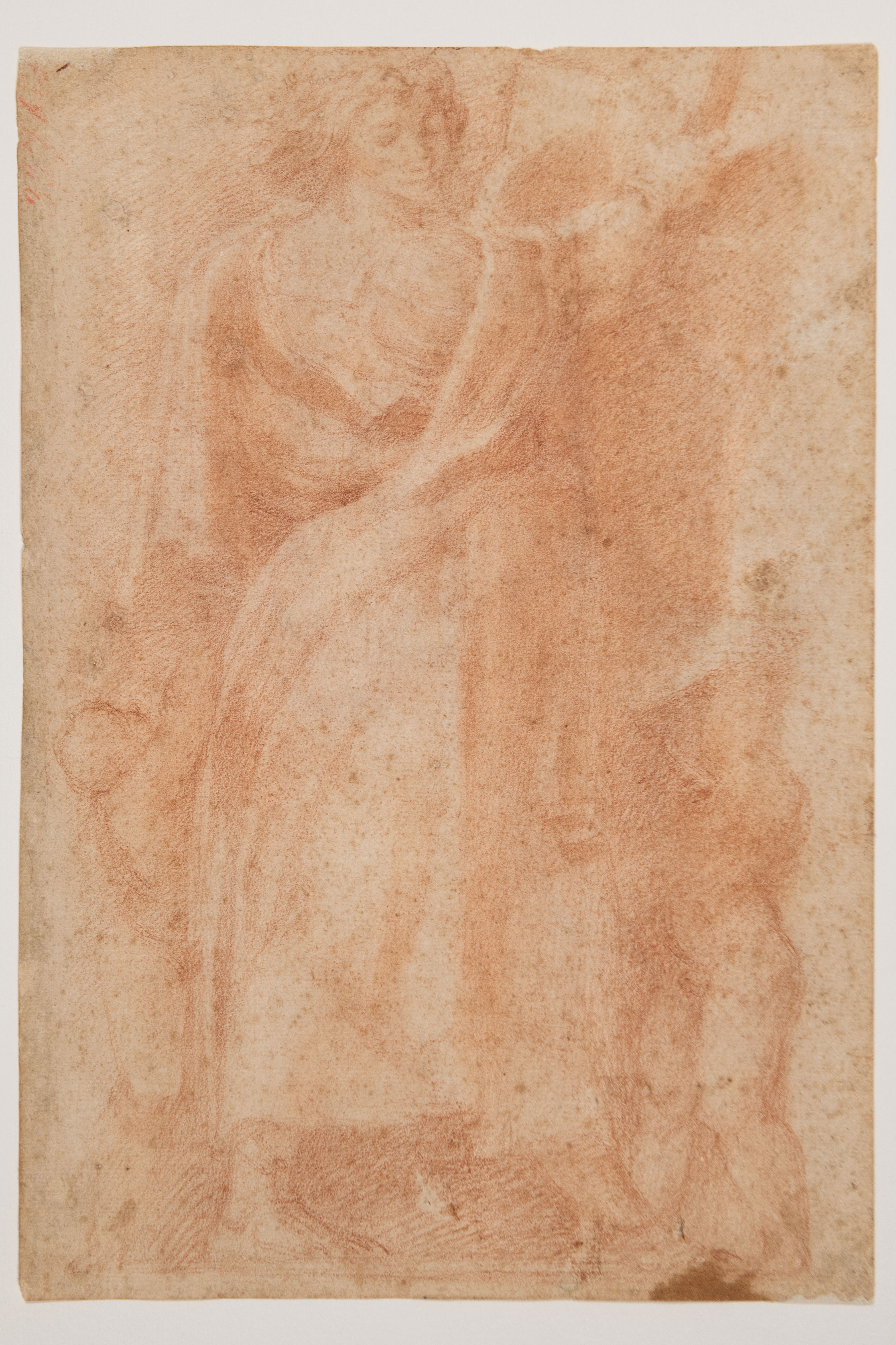 The Naldini scholar Virginia Graziani has dated the present sheet to the middle or late 1560s, after the artist’s trip to Rome and at the start of his independent career in Florence. A related and closely comparable red chalk drawing of a river god and lion – essentially the same composition seen from a slightly different angle – appears on the recto of a double-sided drawing by Naldini formerly in the collection of Ian Woodner and with Colnaghi in 1994, which is today in a private collection. As Rick Scorza has noted of the ex-Woodner drawing, the other side of which is a copy in black chalk after a figure from Michelangelo’s Last Judgement in the Sistine Chapel, in terms equally applicable to the present sheet, ‘drawing directly from observation, Naldini produced a faithful but also dynamic copy of Michelangelo's Last Judgement. Obviously, in the act of copying, an artist suppresses his own creativity. Turning Naldini's sheet over, however, we see how the creative side of his personality literally explodes in his representation of the River Arno. This drawing clearly demonstrates [Vincenzo] Borghini's opinion that only by recognizing ‘Michelangelo's drawing, relief, grace and liveliness’ can one trace ‘the strength, the grace, the dexterity, the ease, the gentleness, the sound, the nerve, the spirit of that man’’.
