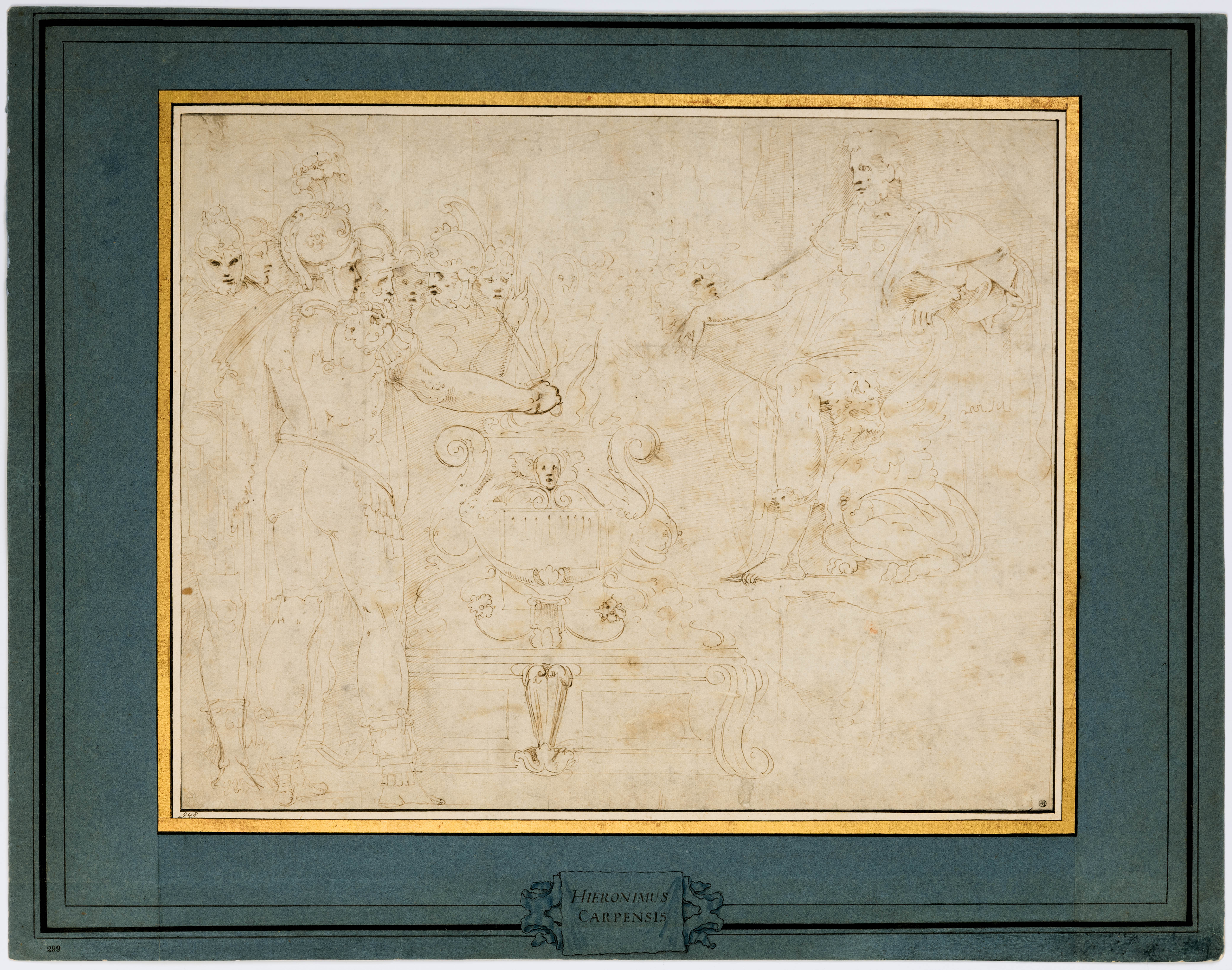 Laid down on a Mariette mount, inscribed HIERONIMUS / CARPENSIS in a cartouche at the bottom.
