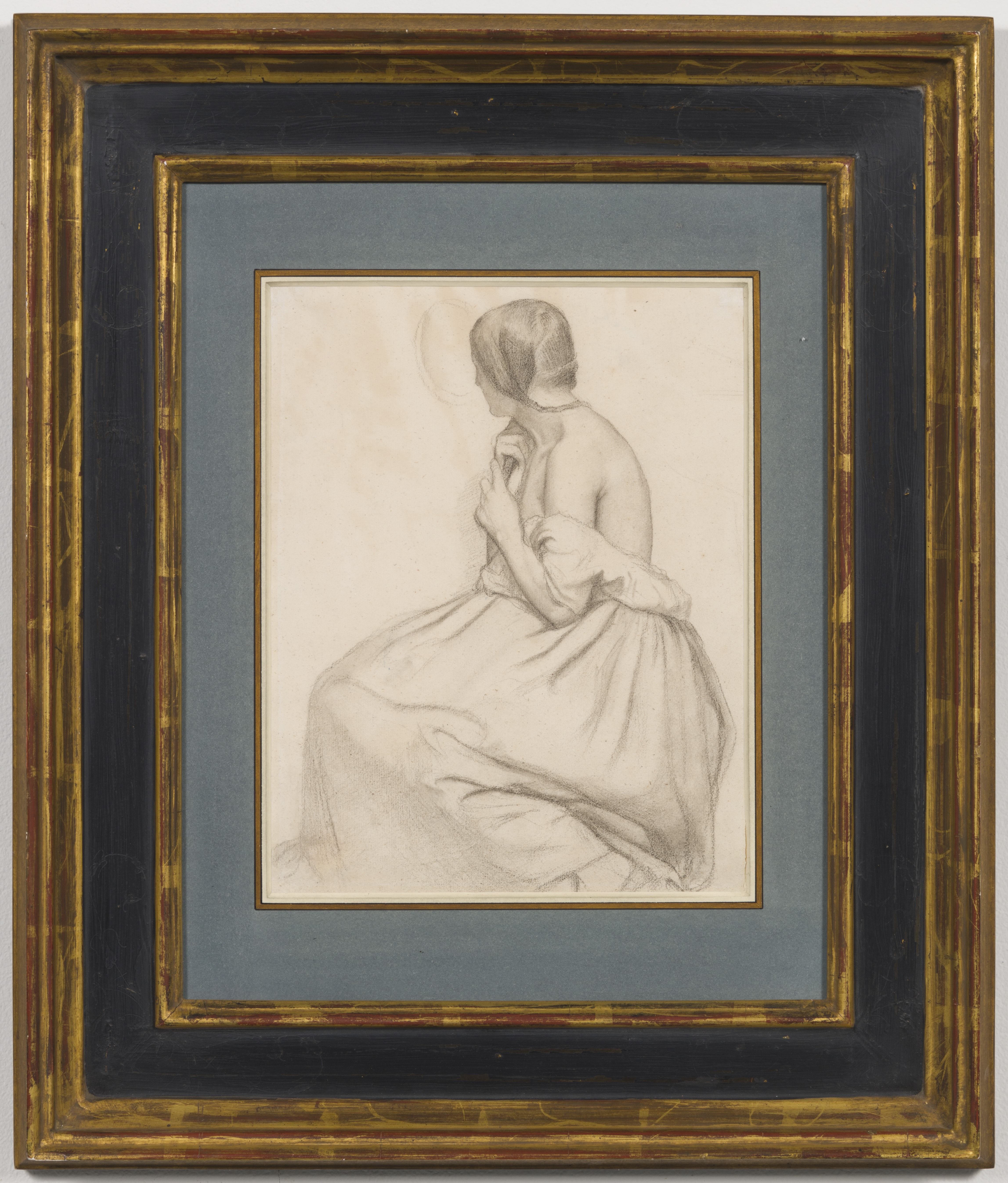 The influence of Ingres is also seen in Degas’s handling of the pencil medium, with a fine hatching that creates a sense of volume in the drapery. Among comparable drawings by Degas is a study of a Young Woman Half Nude Resting on her Elbow in the collection of the Musée d’Orsay. In such academic studies as these, ‘the artist offers a variety of forms for different types of nude models...line drawings focusing on the outline and shaded drawings that use fine hatching to give this graphic art a more pictorial, expressive effect. From supple, athletic silhouettes to meticulously finished drawings with fine, faint lines – veritable working drawings – Degas this built up a formal vocabulary to use as he liked.’