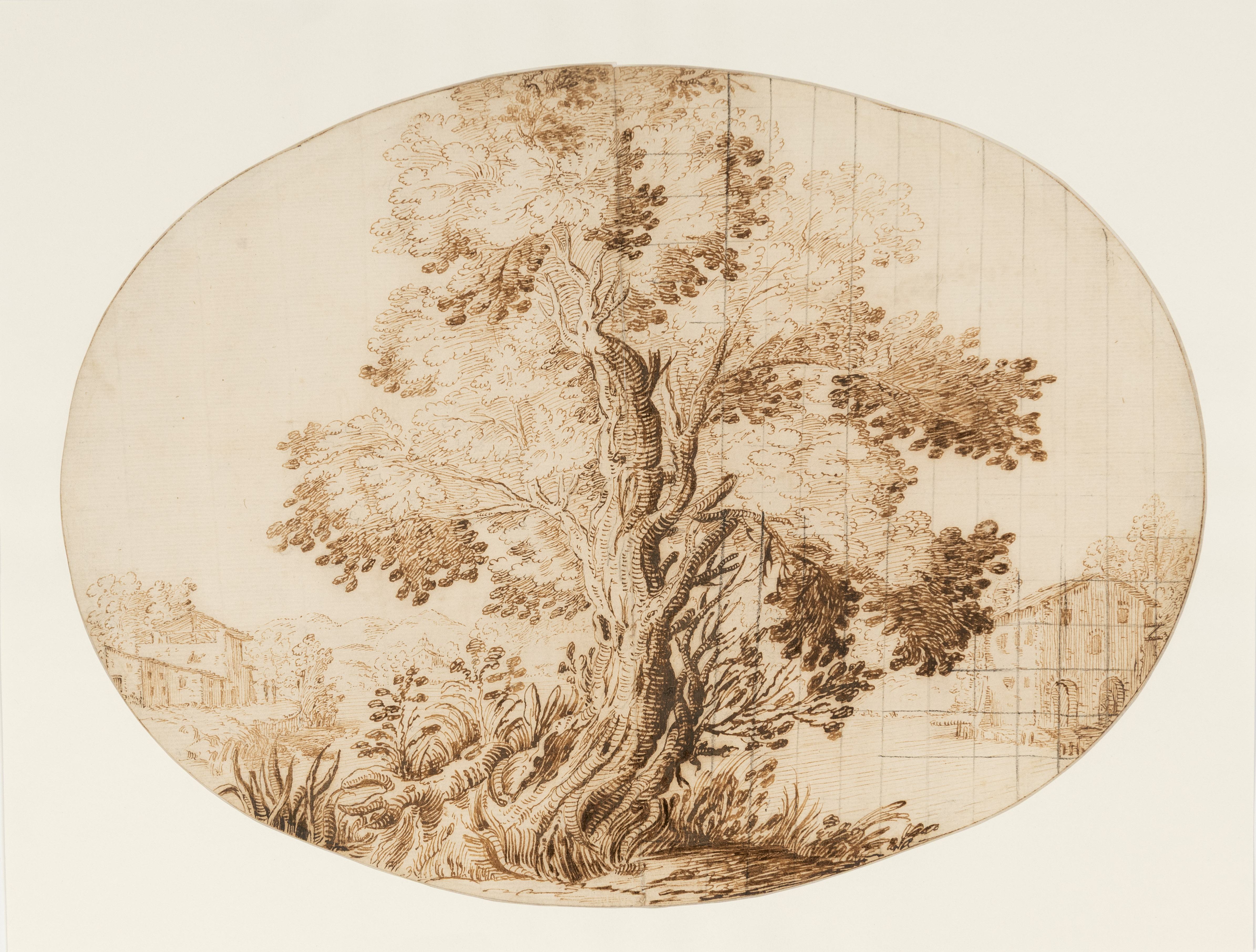 Trees are a common compositional motif in Cantagallina’s corpus of drawings. Among comparable works by the artist is a large study of an oak tree, dated 1624, which was on the art market in New York in 2001 and another sheet, dated 1632, that appeared at auction in London in 1979. A number of similar pen studies of single trees, mostly vertical in orientation, are in the Brussels sketchbook, while several others are in the Uffizi.