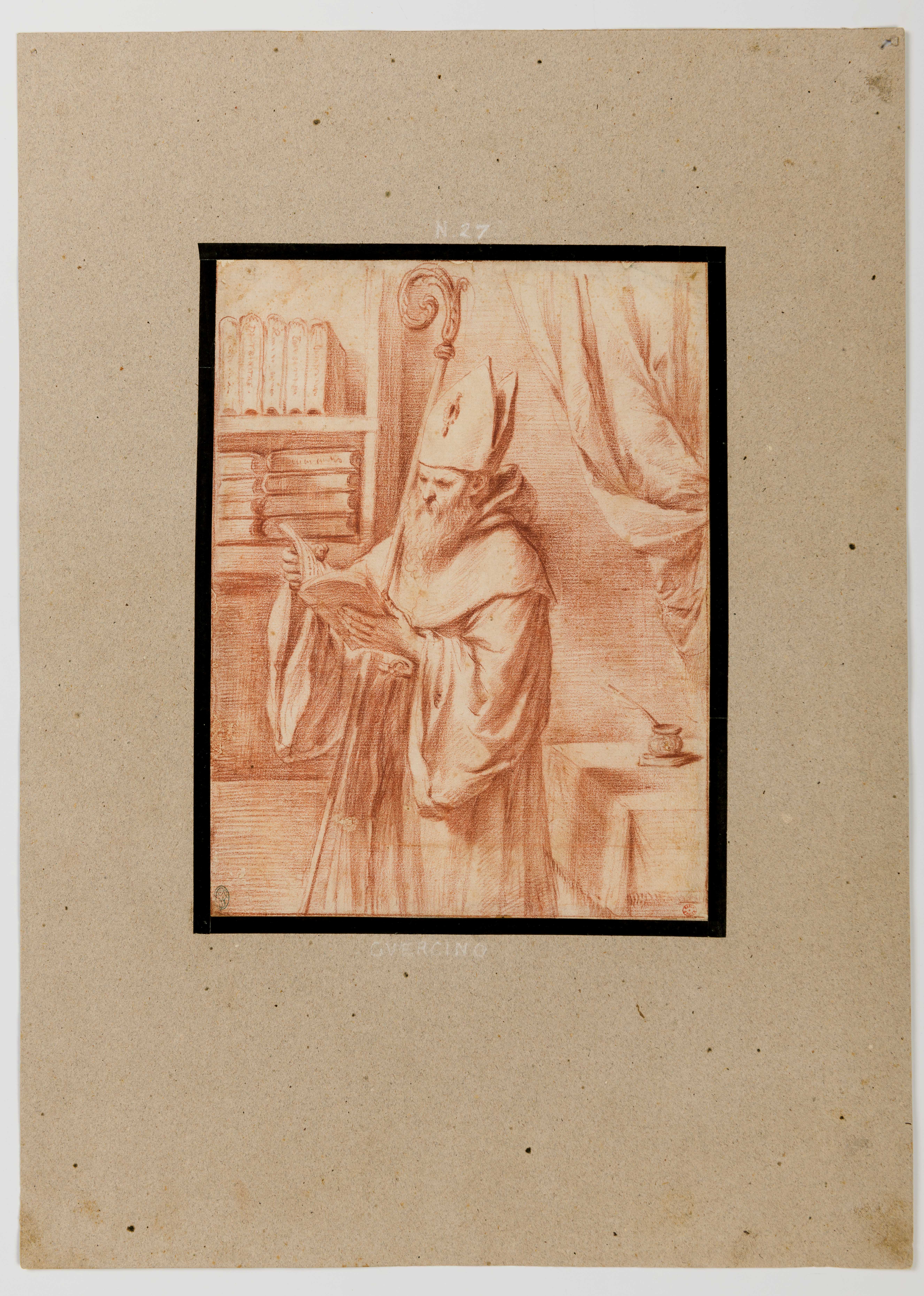 Thematically related to the present sheet is a highly finished pen and ink drawing of a Seated Bishop Saint Reading, of the same approximate date, that was recently on the art market. Likewise unrelated to any known painting, Stone has suggested that the drawing may depict Saint Ambrose, the teacher of Saint Augustine and, like him, one of the four Latin Fathers of the Church. Unlike the two red chalk drawings of Saint Augustine, however, the pen and ink drawing is of horizontal format and is unlikely to have been a study for an altarpiece, although it may have been intended for a print or book illustration.